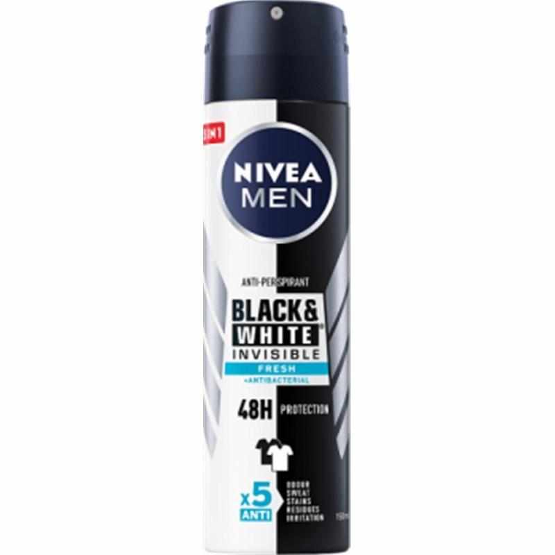 Szukasz niezawodnego sposobu na zachowanie świeżości bez ryzyka zniszczenia ulubionej czarnej koszulki lub białej koszuli? NIVEA MEN Black&White Invisible Fresh to zaawansowany antyperspirant w sprayu, który został stworzony z myślą o aktywnych mężczyznach ceniących nienaganny wygląd. Dzięki innowacyjnej formule, produkt rozwiązuje problem uciążliwych plam, pozwalając Ci skupić się na tym, co naprawdę ważne. To nie jest zwykły dezodorant – to Twoja tarcza ochronna 5w1, która dba zarówno o Twoją skórę, jak i o Twoją garderobę.