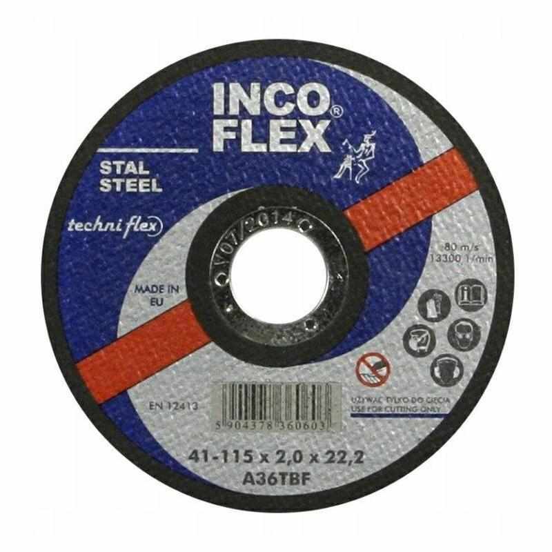 Produkt został wykonany z wysokiej jakości ziarna ściernego, które zostało precyzyjnie spojone żywicą syntetyczną i wzmocnione mechanicznie tkaniną z włókna szklanego. Taka konstrukcja gwarantuje maksymalne bezpieczeństwo pracy nawet przy wysokich prędkościach obrotowych. Tarcza Inco Flex charakteryzuje się wyjątkową stabilnością, co eliminuje wibracje i pozwala na uzyskanie gładkich krawędzi bez nadmiernych zadziorów i przypaleń materiału.