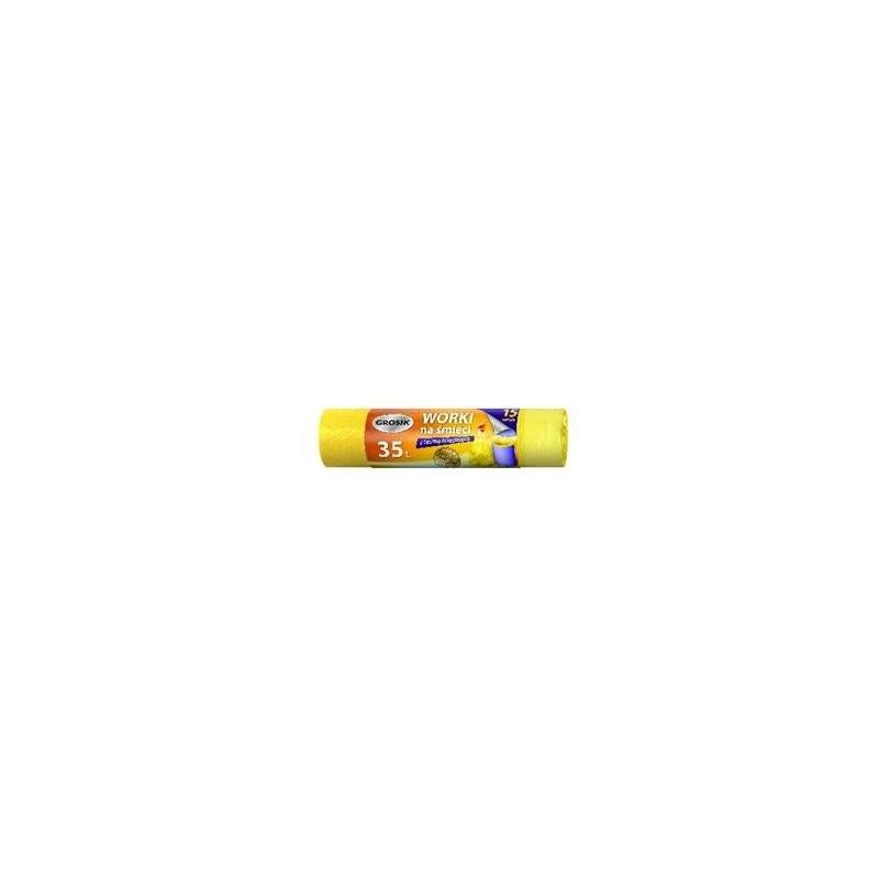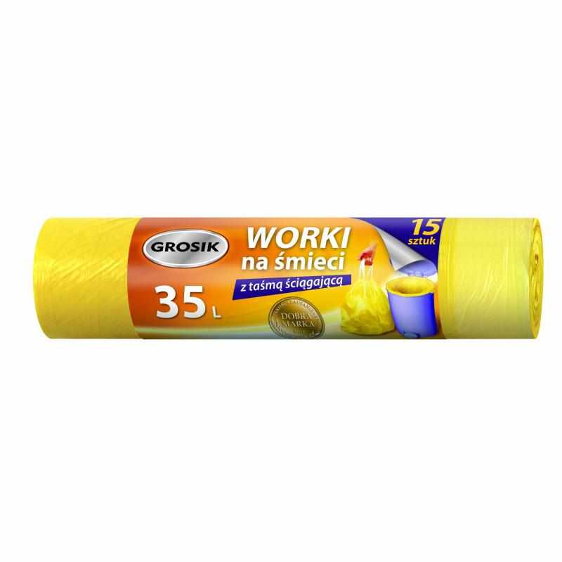 Worki Grosik 35L w kolorze żółtym doskonale sprawdzają się w łazienkach, biurach oraz kuchniach przy segregacji odpadów (np. plastiku lub papieru). Aby użyć, wystarczy oderwać worek z rolki, umieścić go w koszu i wywinąć krawędzie na zewnątrz. Po zapełnieniu pociągnij za żółtą taśmę, zawiąż i wynieś. Wybierz markę Grosik – bo sprytne i tanie sprzątanie to podstawa każdego dobrze zorganizowanego domu.